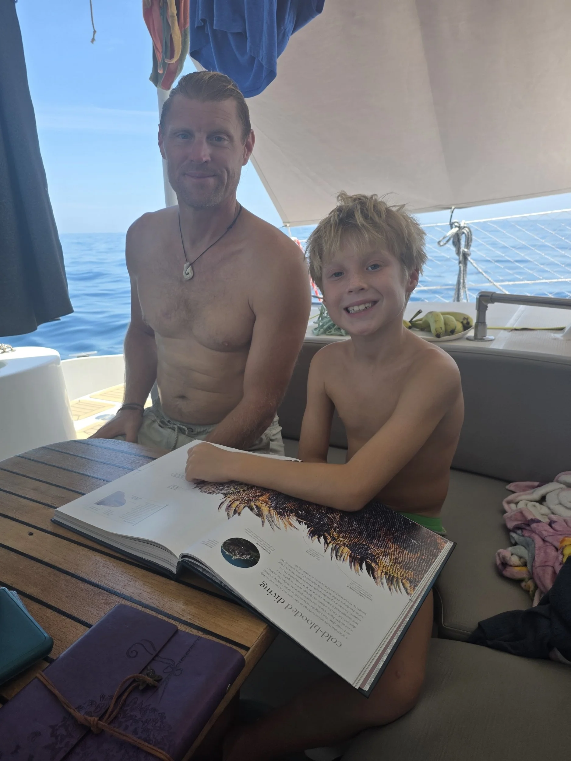Adam swears there was a yellowfin tuna taunting him. Also reports of the wildest jellyfish he’s ever seen. While he was in the water, he also cleaned the hulls in preparation of the strict rules for the Galápagos.