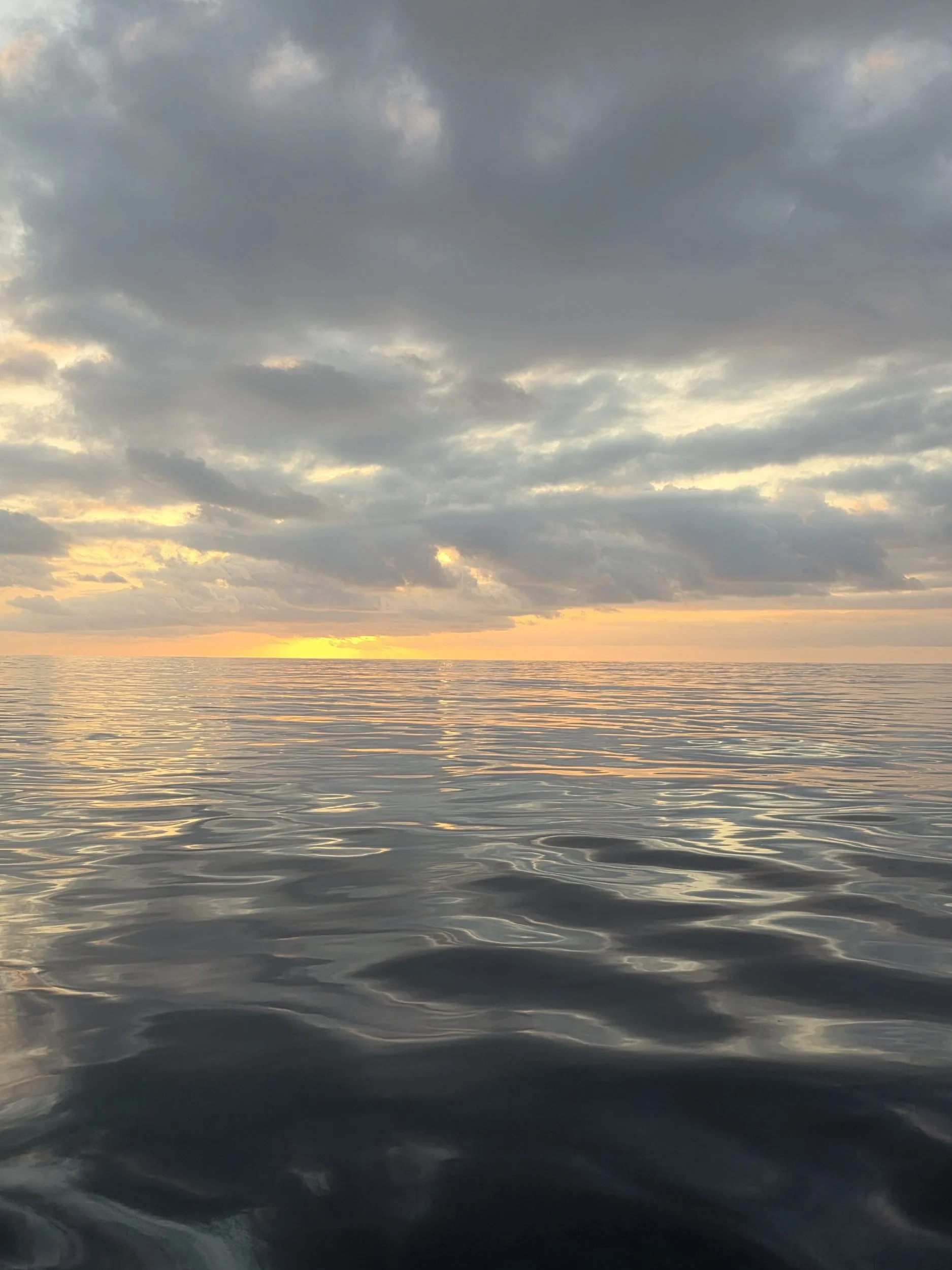 The ocean kept shifting silky swells to mirror-flat calm. Purple sunsets, full moon nights, and eventually a little more texture as we got closer.